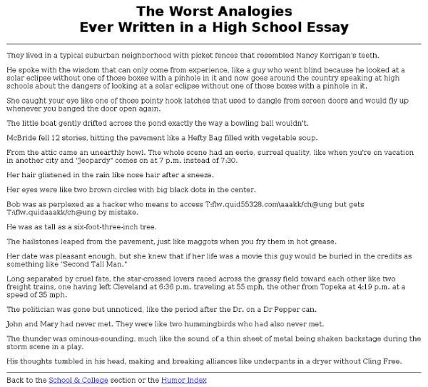 How to write a great analogy essay? Our guide describes the perfect paper's structure and includes Use analogy essay to compare the two unlike ideas to demonstrate a common element for both, analogy essay topics.